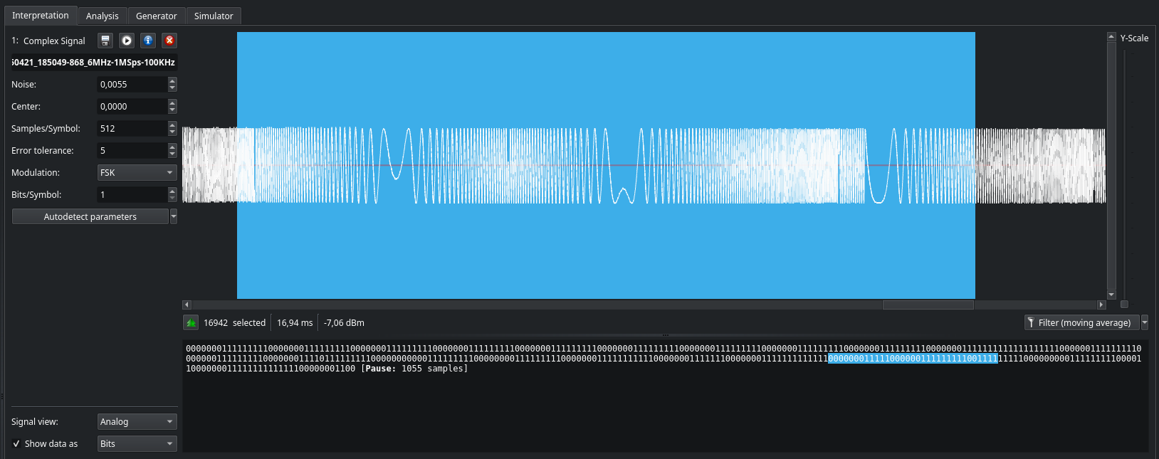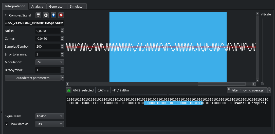 Looking at the payload in the FSK modulated signal from the transmitter in URH (with an RTL-SDR Blog V4):